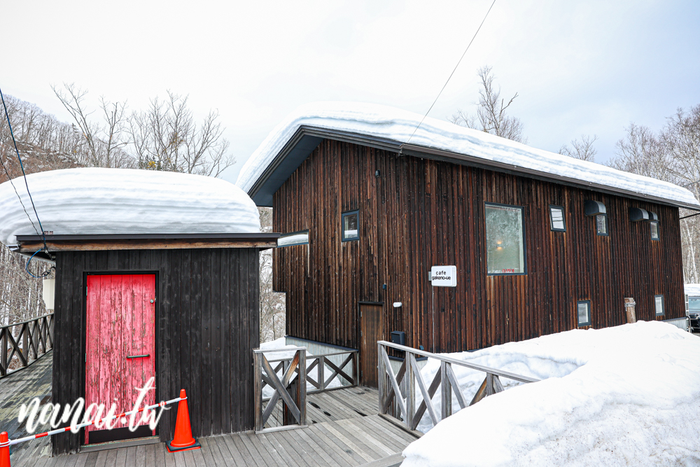 北海道札幌市南區推薦カフェ崖の上!這天除了去「雨ノ日と雪ノ日」吃義式冰淇淋,我們還去了cafe gakeno-ue吃甜點~這家店就藏在小樽定山溪線上,開車沒注意會直接呼嘯而過,整棟是木造小屋,冬天來特別有感覺,坐在裡面邊喝下午茶,邊看窗外白雪紛飛,超療癒~