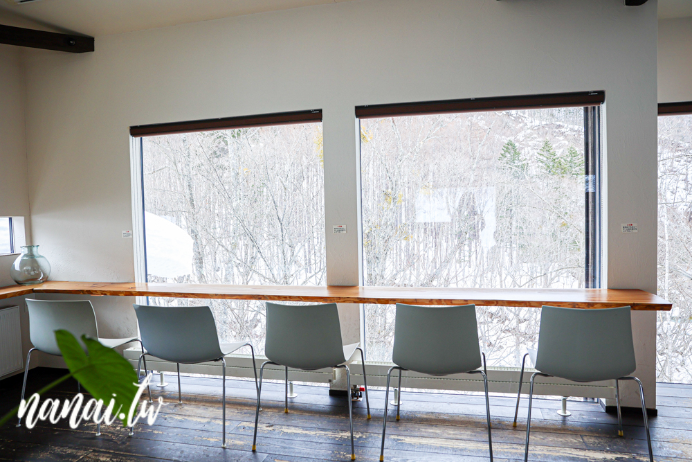 咖啡館在二樓,空間不大但很溫馨,整體採光超棒,坐在窗邊剛好可以望出去,一整片白雪景色鋪滿眼前。