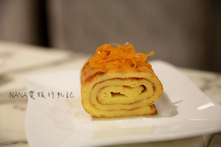這道橙卷很特別,選用橙汁製作,吃起來口感濕潤帶甜香,口味也很不錯。
