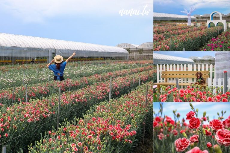 董家花田,彰化田尾景點推薦!田尾康乃馨花季開跑,占地超廣的一公頃康乃馨花海超夢幻,艷紅的花兒有如彩虹般的精采,想欣賞康乃馨花海朋友可以把握時間,錯過就要再等明年。董家花田除了康乃馨外,園區主人還加碼開放溫室區域,以及草地野餐、摩艾園,讓你記憶卡拍到爆表,最後離開時還可獲得一支康乃馨送給阿母喔!