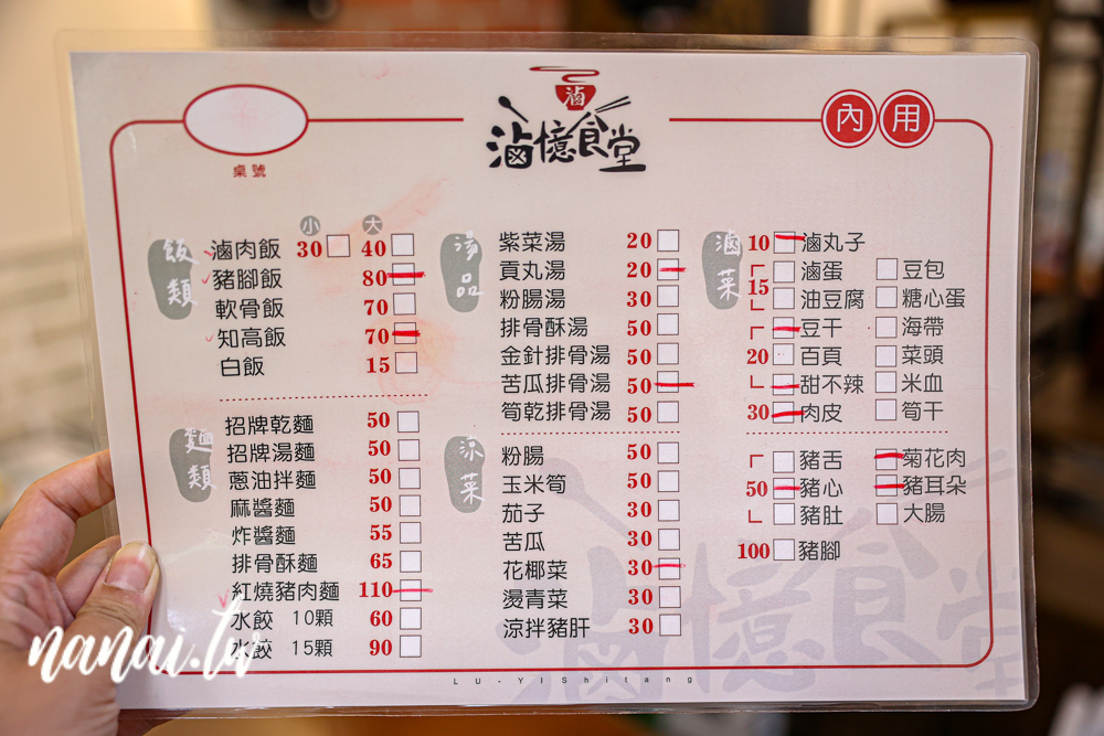 滷憶食堂的餐點選擇多元,不只有飯類,還有麵類、湯品、涼菜、滷菜,價格落在30元~110元,親民又實在。另外店家有提供外送服務,滿300元3公里免費外送。