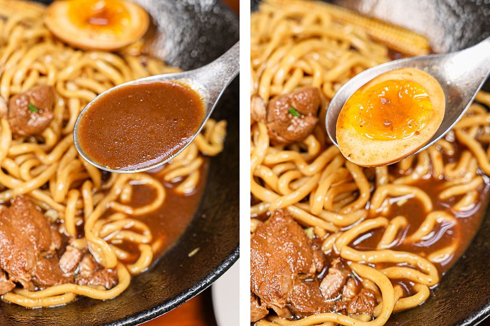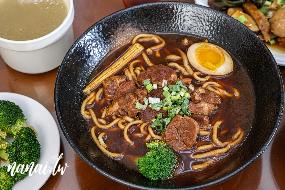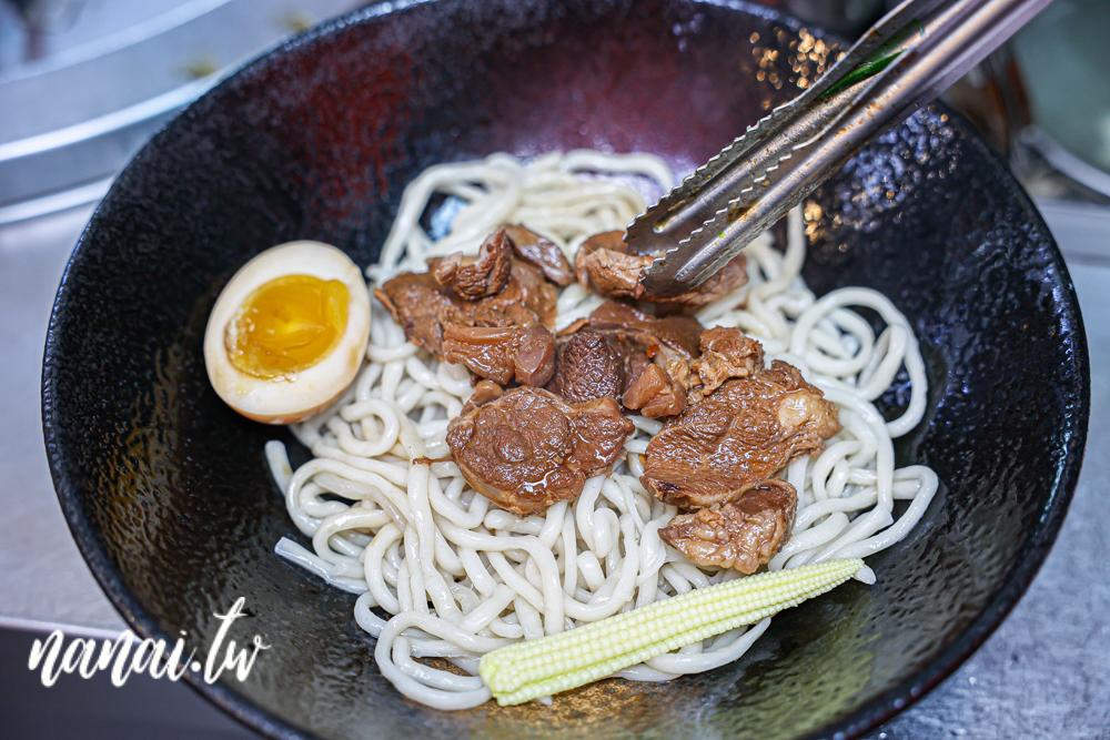 肉品選用豬腱肉,咬起來軟嫩不柴,給得量也很誠意,再搭配Q彈有咬勁的白麵條,口感有點像拉麵,和紅燒湯頭合拍。最加分的是,麵條還有油麵、陽春、白麵自由選擇,且碗裡還放了半顆溏心蛋和玉米筍,這樣一大碗只賣110元,這價格真的佛心。