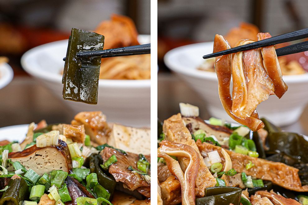 我們點了平常會吃的滷丸子、豆干、甜不辣、肉皮、豬心、菊花肉、豬耳朵,他們家的滷菜滷得入味,樣樣吸飽醬香,味道和口感也都不錯。