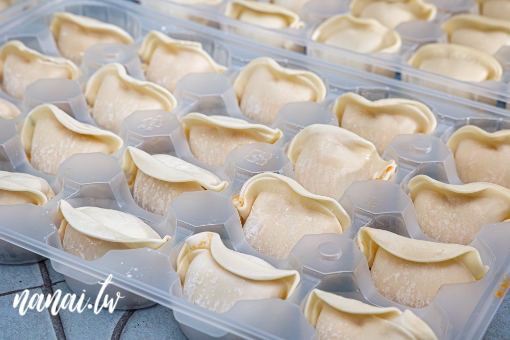 外包裝使用透明袋設計,裡頭的水餃整齊擺放在分格塑膠盒中,每顆都有獨立空間,也不會互相沾黏也很好下鍋。這樣的包裝方式不只方便冷凍保存,要取用時也很輕鬆,想吃幾顆拿幾顆就好。