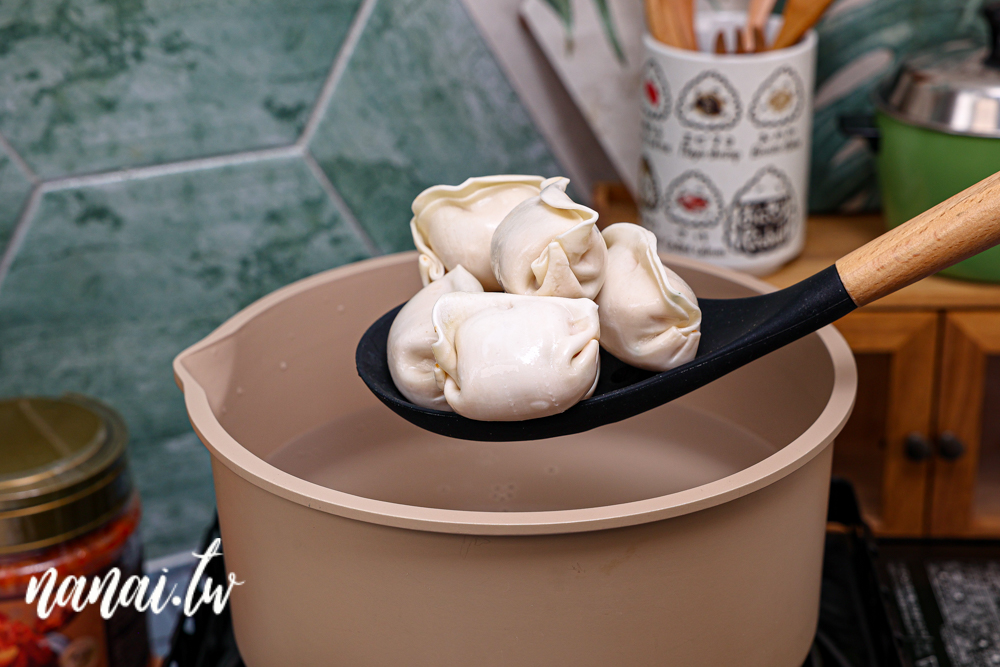 水餃烹煮很簡單,只要熱水煮滾後下鍋十分鐘,不需額外調味、沾醬即可享用,對於不想出門覓食的時候,真的很方便。