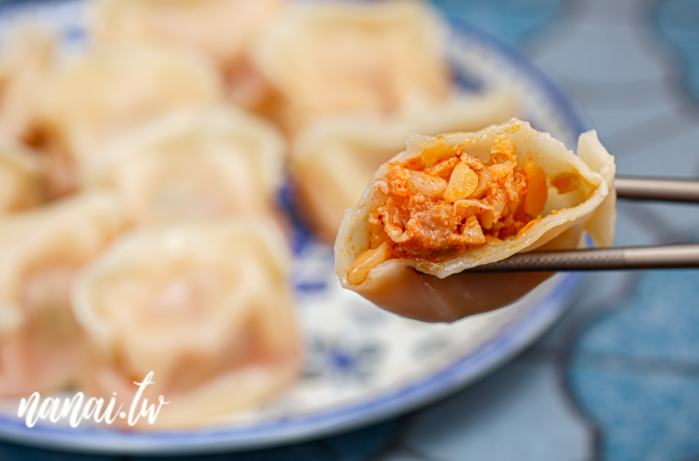 這款剝皮辣椒水餃吃起來跟平常的不太一樣,辣度真的有感,第一口咬下去,辣香直接在嘴裡炸開來。聽說他們用了比一般多2.5倍量的剝皮辣椒,加上當天現宰的溫體豬,餡料是三肥七瘦的黃金比例,咬起來帶點彈性又不會膩。特別的是,辣中還吃得到甘甜,越嚼越有層次感。那種鮮香多汁的口感,真的很容易讓人停不下來,不管當正餐、宵夜,還是露營時煮一鍋,都超適合。