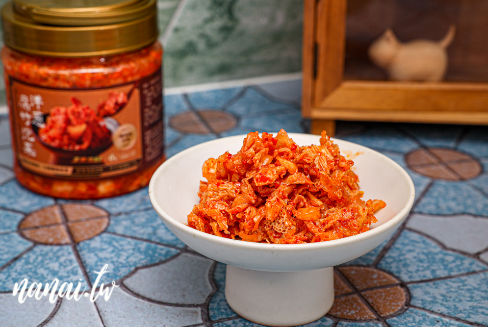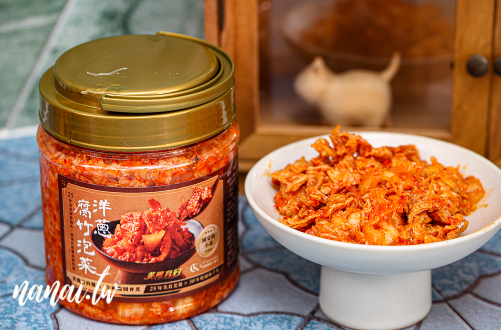 這款洋蔥腐竹泡菜滿特別的,用了洋蔥、腐竹、大白菜和新鮮辣椒一起製作。裡面的腐竹被剁成細碎狀,和泡菜醬汁融合得剛剛好,一口咬下去,腐竹吸飽醬汁,吃起來多了Q彈的口感,再搭配大白菜的爽脆,整體有脆中帶彈的層次感。味道是那種清爽又帶點甘韻的泡菜香,鹹香不膩,配白飯真的超開胃。更棒是這款是植物五辛素,不論是吃葷還是吃素的都能放心享用。