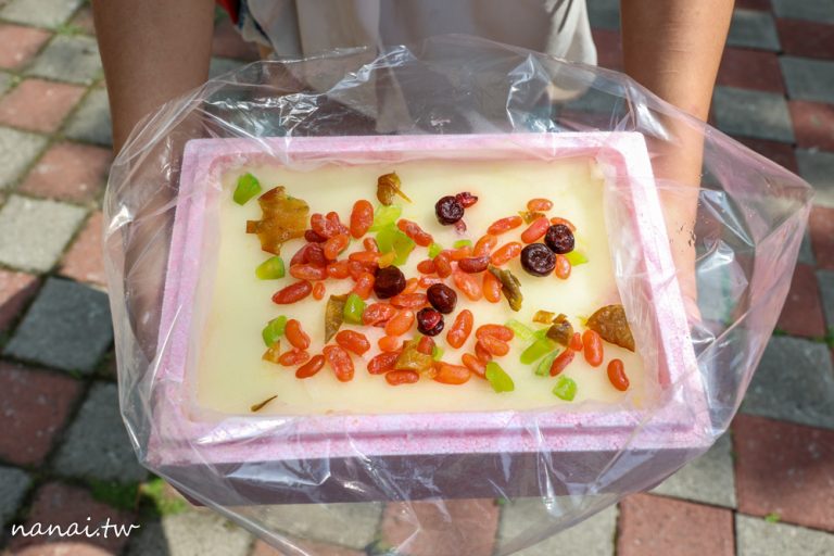 你看是不是超級浮誇!打開包裝瞬間,還以為是菜頭粿鋪上蜜餞、情人果、楊桃、綠豆、蜜豆之類,差一點還不知道該如何下手,而且一隻手拿很吃力,一定要雙手捧著才拿的動拉~
