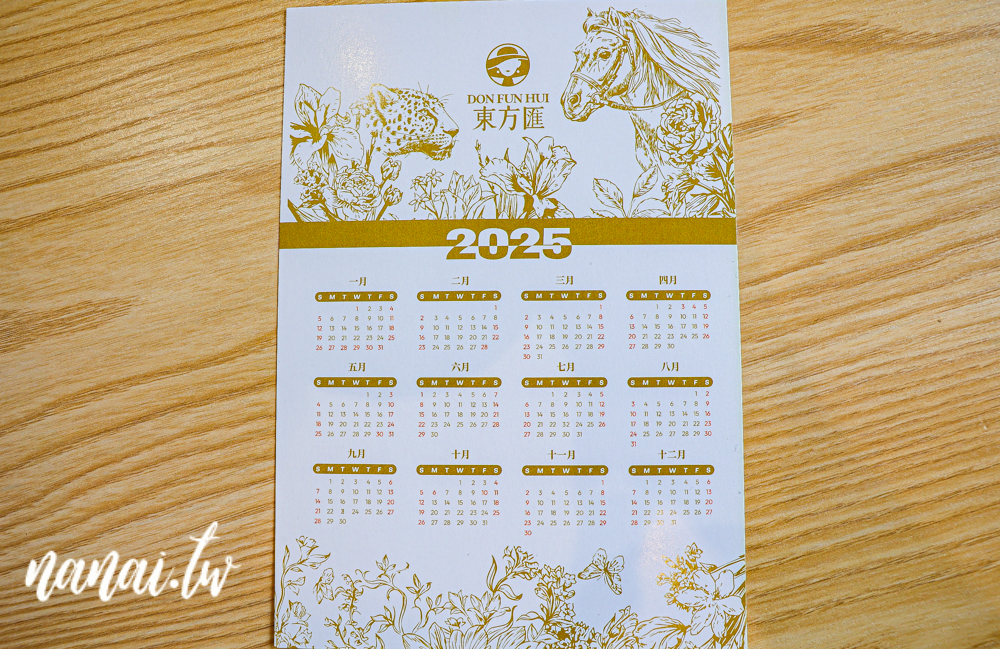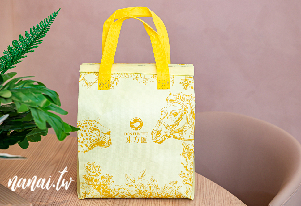 一般外帶飲料,保冷袋都要另外加購,沒想到購買東方匯飲品竟然直接贈送,還不是隨便的那種,是有質感的品牌保冷提袋,而且整體設計細節都滿講究的,拿來送禮也很有面子。袋子裡還貼心放了一張結合菜單和日曆的小卡,感覺得出店家的用心。