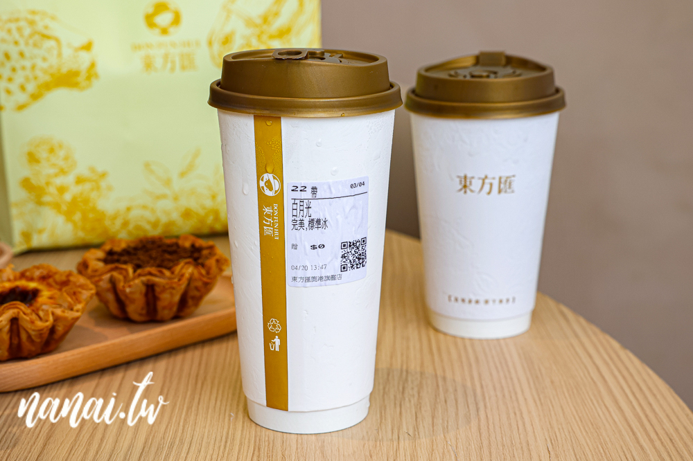 東方匯的執行長喜歡精品,只要產品不夠好看、不夠好喝,就不會上架。當我們實際拿到飲品時,完全能感受到他們對時尚美學的執著。從品牌名稱到每一杯飲品的包裝設計,都非常講究,尤其是燙金的Logo搭配白色杯身,再加上金色系的杯蓋,拿在手上就有種不凡的感覺,完全走高端手搖茶飲路線,連喝茶也能很有品味。對了,他們家的吸管也是特別訂製的三管設計,喝起來能更完整地把茶飲的風味帶進口中。