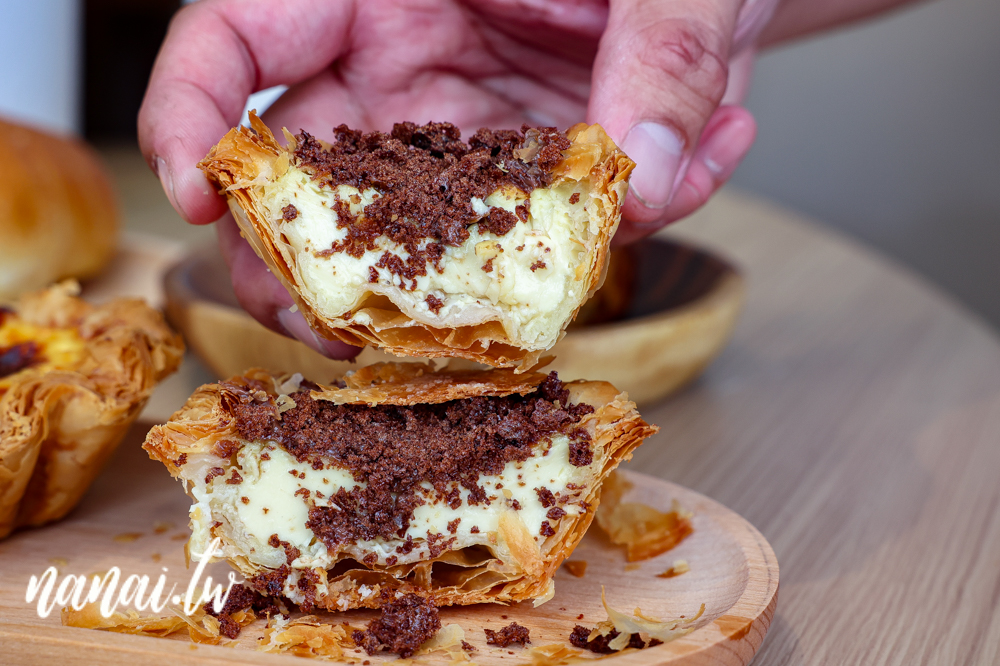 脆酷力蛋塔是近期推出新品,基本上延續原味蛋塔的做法,只是在出爐後塗上一層香濃的阿華田醬,再撒上滿滿的阿華田顆粒,巧妙融入巧克力香氣,每一口不僅能品嚐到濃郁的巧克力風味,還有柔滑的奶香,兩者搭配得恰到好處,不過,我個人偏愛原味多一點。