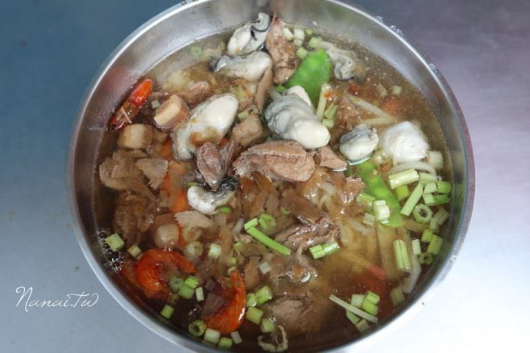店員端上桌時看著大碗公裡的餡料,這也太豐富了啦!nana拿起湯匙數看看裡面到底有幾種料,你看有櫻花蝦、瘦肉、滷肉、魚板、鮮蚵、魚丸、筍子、豌豆、蝦子等,吃完這一碗一定超有飽足感,而且只要50元,是不是超級佛心。