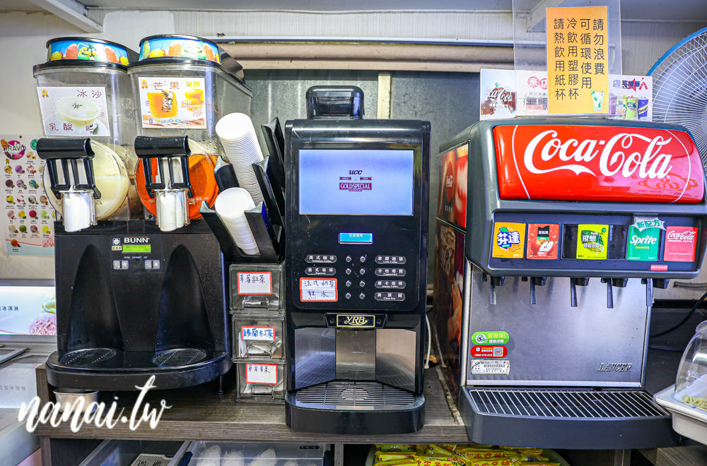 飲料區也很有誠意,三台飲料機任你選,洛神花、綠茶、可口可樂、冰沙等多達11種口味,近期還引進研磨咖啡機,奶茶、義式咖啡、拿鐵全都應有盡有,光是飲料就喝了兩輪。