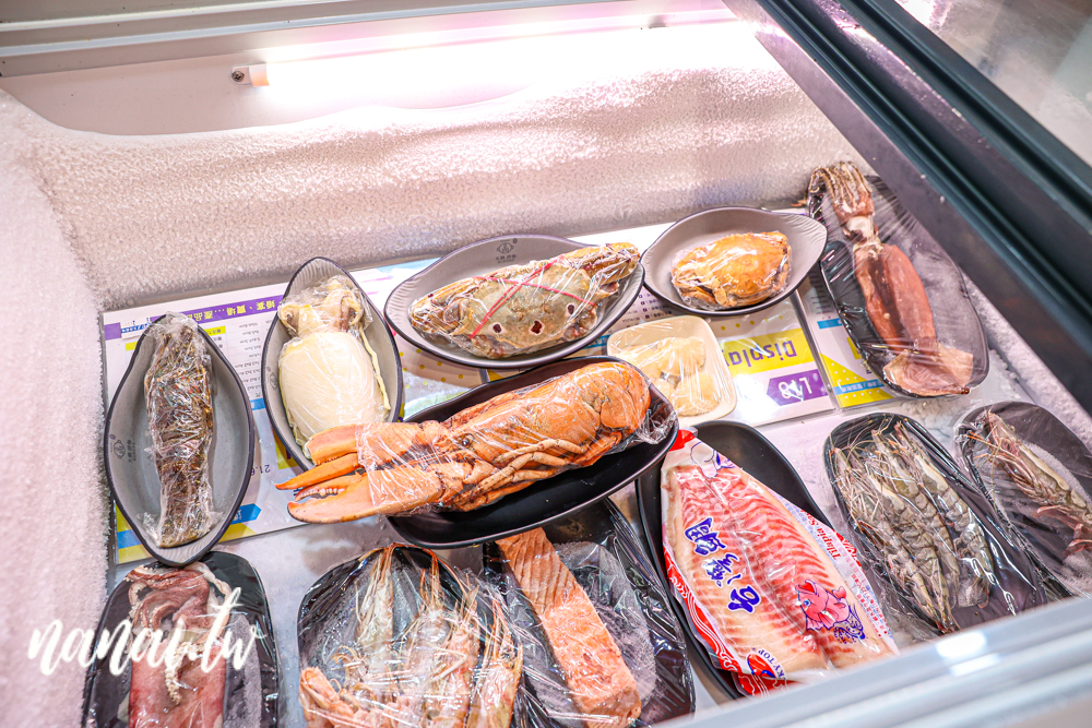 一走進店內,立刻被門口那台冷凍冰箱吸引,裡頭陳列著各式各樣的冷凍海鮮。