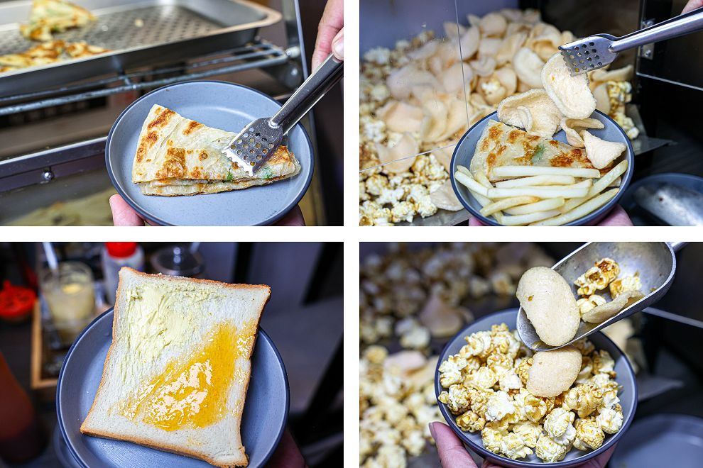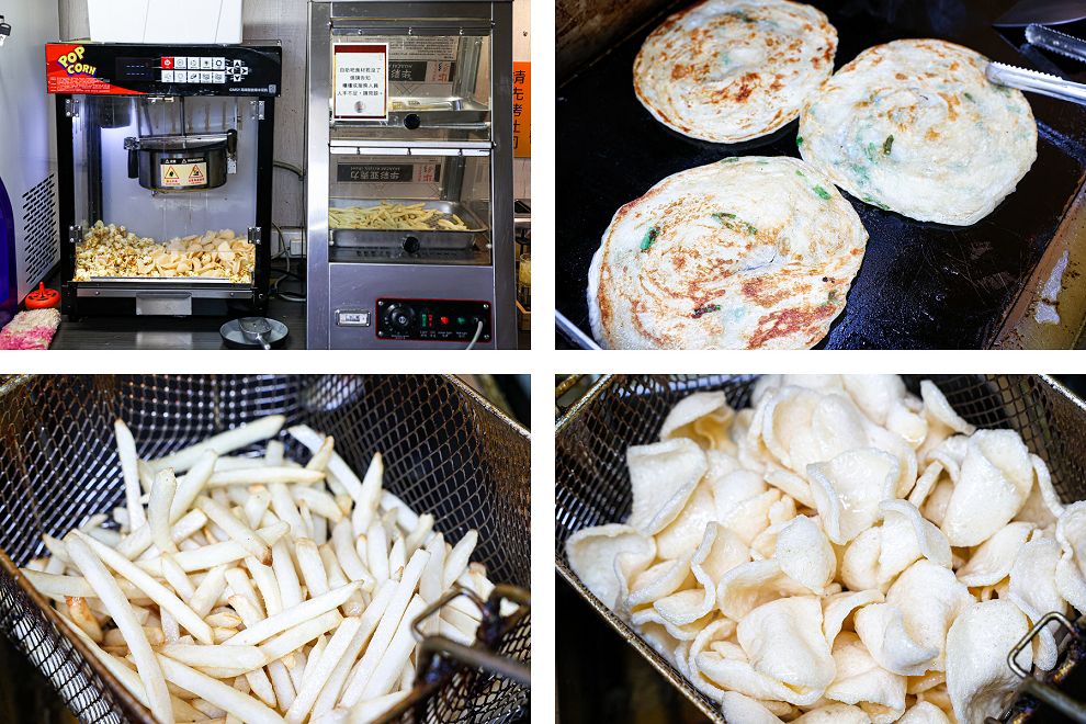 我的老天鵝!這自助吧也太狂了吧~不只有常見的爆米花,竟然還出現蔥油餅、蝦餅、薯條,直接擒住大人小孩的胃。重點是現點現炸,熱騰騰上桌,香酥涮嘴完全停不下來。