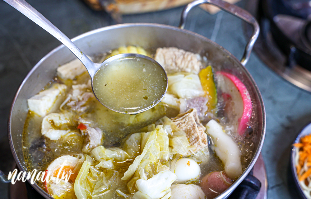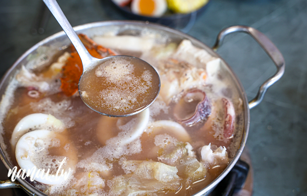 湯頭一喝就能感受到店家用心,老闆不計成本,選用大骨熬煮作為湯底基礎,上桌時再透過海鮮與蔬菜慢火燉煮,每一口都是滿滿自然鮮甜味,且溫順不膩口。