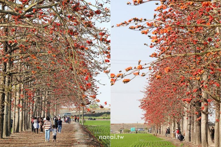 彰化竹塘》竹塘木棉花道。田中央的木棉花道,宛如艷紅小隧道,2020/3月花況 - Nana愛旅行札記