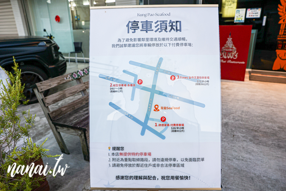 到台中用餐最怕找不到停車位,這家貢拋雖然沒提供特約停車場,但附近就有三個收費停車場(Times 台中文昌街停車場、帕客停車場 永春站),走路大約幾分鐘就到,停車還算方便~
