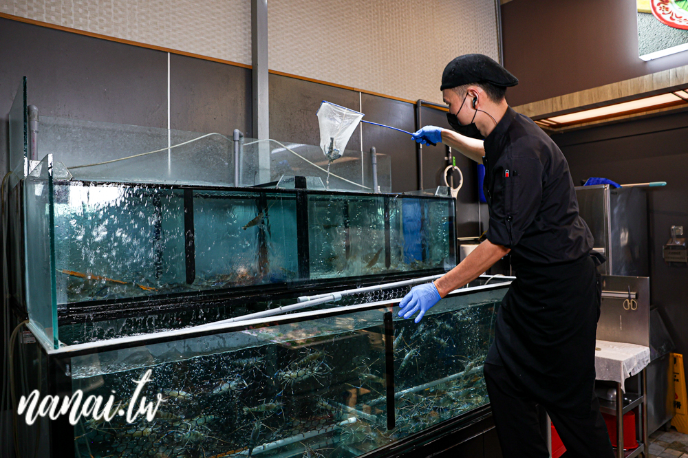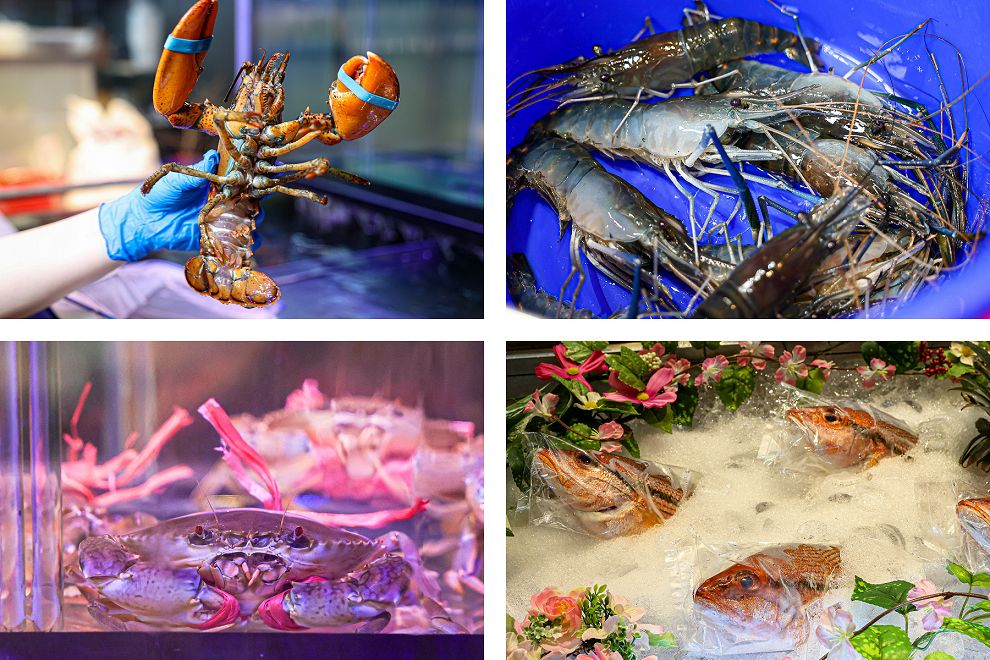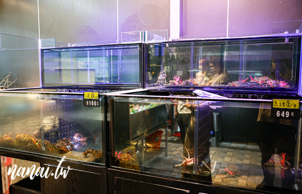 最讓我期待的就是現撈海鮮區了!身為海鮮控,一看到「現撈」兩個字整個超興奮。一進去就看到兩個水族箱,裡面活蹦亂跳的海鮮超吸睛,雖然泰國蝦不能指定,但龍蝦、魚、螃蟹都能挑自己喜歡的尺寸。