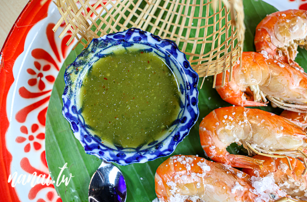泰國蝦蘸著特製海鮮醬有夠涮嘴,酸辣帶勁的滋味一入口就衝出來,還帶著蝦子的鮮甜,這樣吃真過癮~