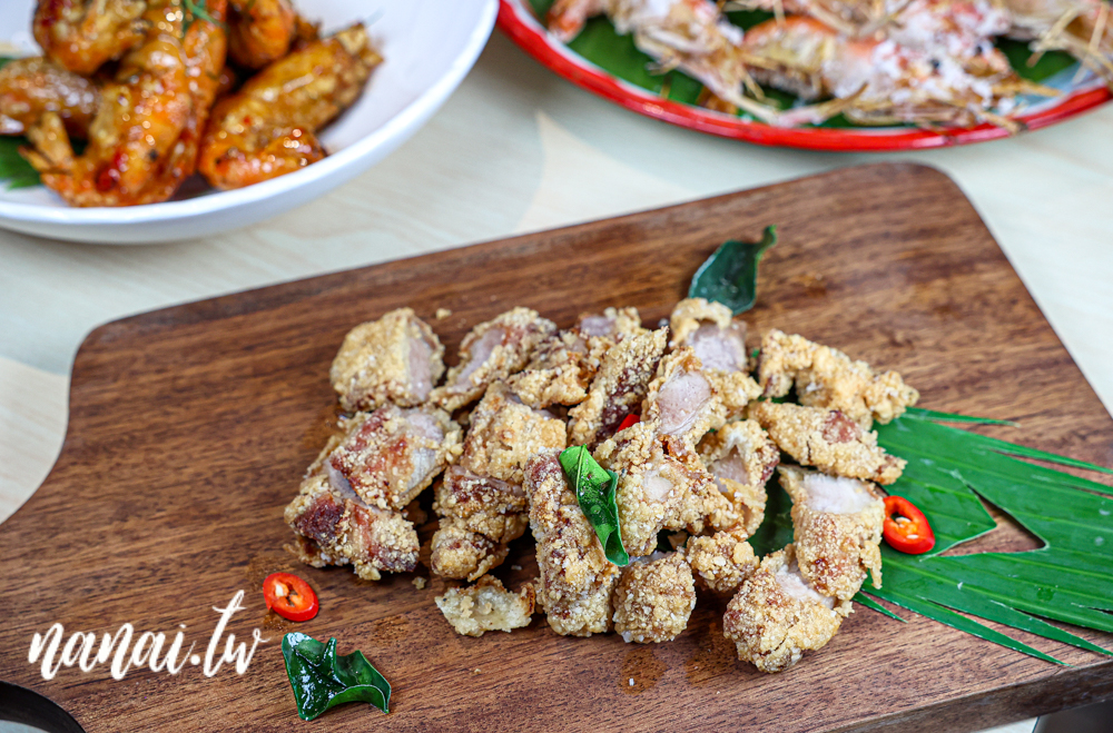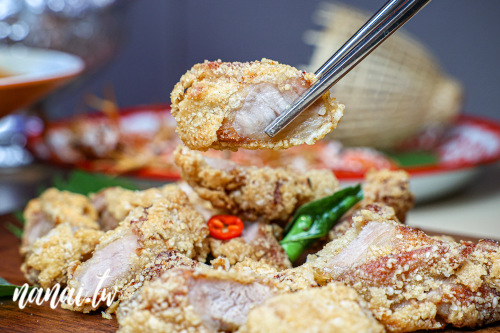 除了海鮮,當然要來一份招牌家鄉炸豬肉滿足一下肉控的心。鮮嫩豬肉裹上特製炸粉,炸到金黃酥香,咬下去外皮酥脆、肉質還保有嫩度,不會乾柴,光是這一道就能配好幾碗飯啦~