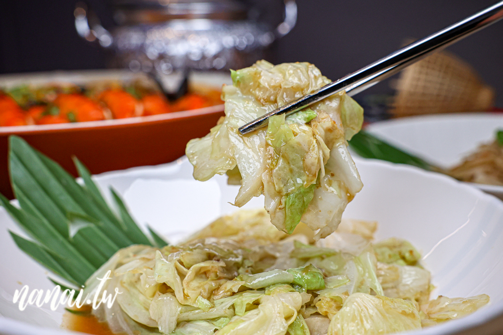 泰味高麗菜也很有誠意!選用高山高麗菜,吃起來清甜又脆口,加上泰式豆瓣醬快炒,香氣整個炒出來,鹹香中帶點回甘,這時再扒一口白飯剛剛好。