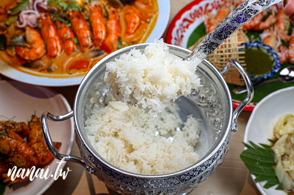 吃泰式料理沒有白飯怎麼行!這裡白飯每人30元,像我們三個人就是90元一鍋,這鍋吃完後竟然可以免費續,完全不怕吃不飽。貢拋用的是細長型的茉莉香米,煮得剛剛好,粒粒分明不黏口。
