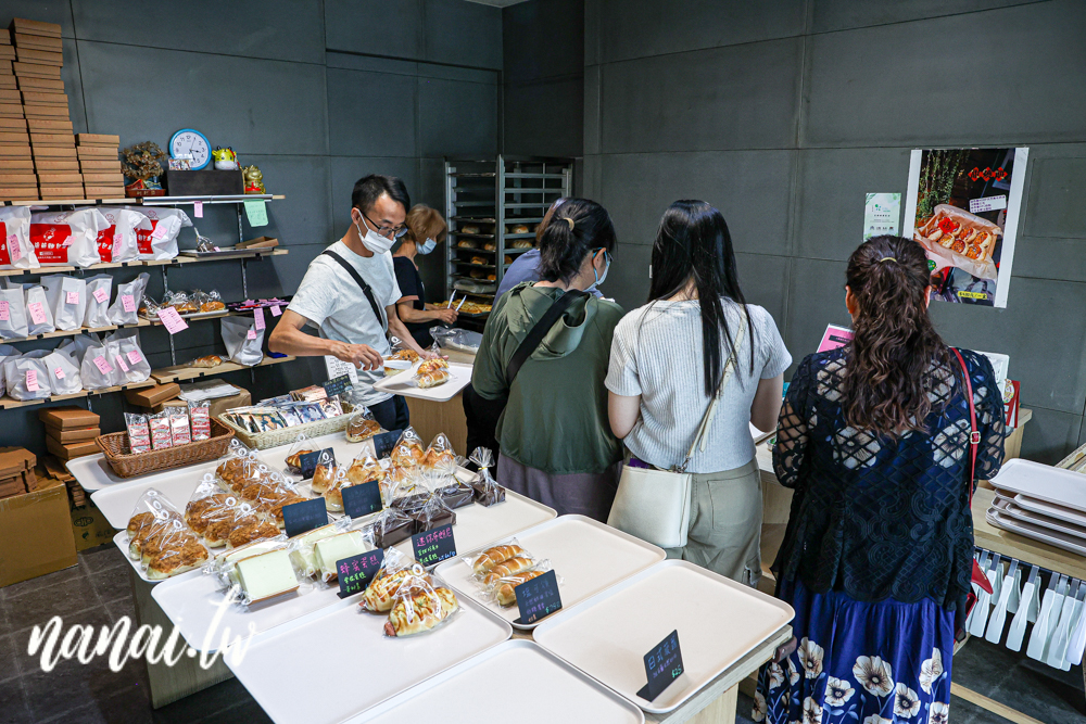 我們大約14:30抵達現場,檯面上的麵包品項還不多,因為尚未全部出爐,只見一盤盤新鮮麵包陸續端出、冷卻,接著開始裝袋打包,原來這些都是預訂客的訂單,現場只能看看有沒有剩下的可以買。