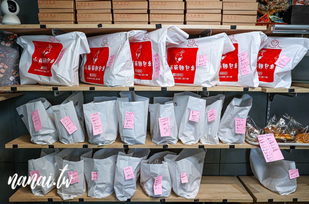 一開始以為小爺爺麵包車跟一般麵包坊差不多,實際走進店裡才發現主要以預約制為主。店內空間不大,架上商品還在陸續出爐,牆上卻已放滿一袋袋包好的麵包,全是客人前一晚就預訂好的。熟門熟路的老顧客一進門不是挑麵包,而是直接到預訂區取貨結帳,不用擔心想吃的品項還沒出爐或賣完,還能搶先掌握新品與團購消息!