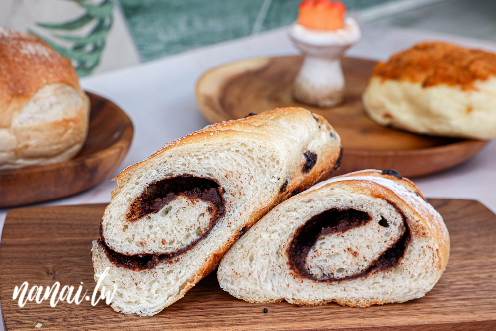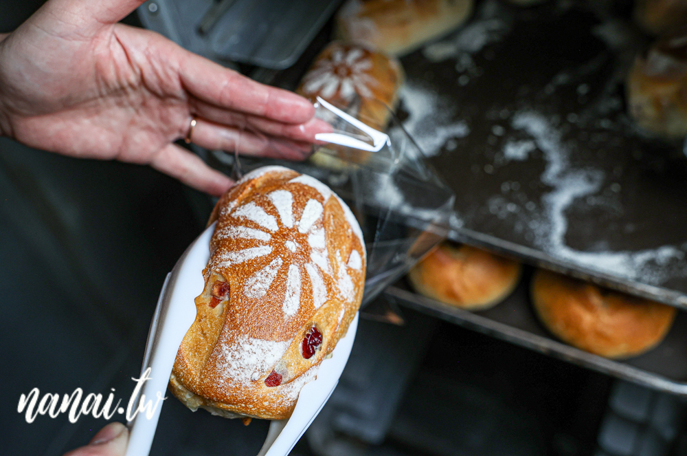 還有紅豆麵包超有料,內餡給得不少,用的是低糖紅豆餡,吃起來不會甜膩,咬下去能感覺到綿密中還保有一點顆粒感,多了點層次。因為是老客人們的心頭好,每次菜單一公布就很快被預訂一空,現場想買得碰碰運氣。