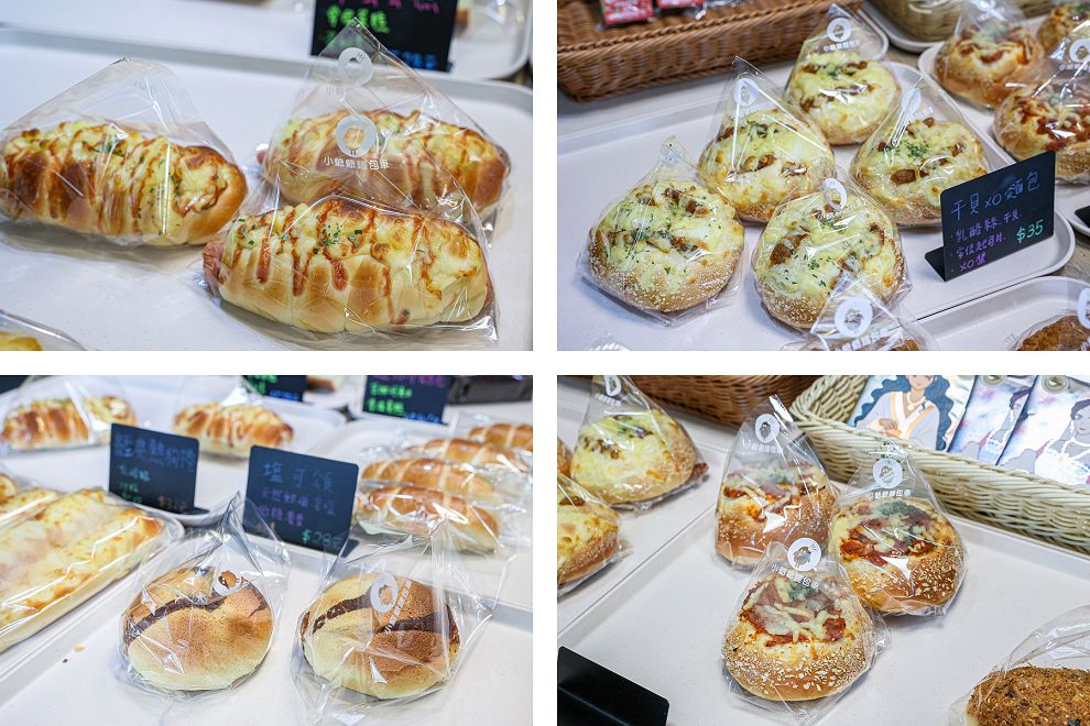 小爺爺麵包車堅持每天新鮮手作,老闆一早就開始備料,門市下午13:30才開,麵包會陸續出爐到16:00,這時段是品項最齊全的時候。全店多達30~40種麵包,包含常態販售的軟歐、起司包、日式麵包,以及開團限定的傳統歐式麵包與甜燒餅。前一晚會在LINE公告菜單,依預訂數量現做現烤,熱門品項常常前一晚就被搶光,想吃一定要記得提前預訂。