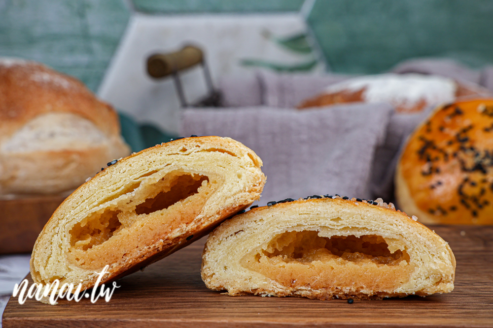 一口咬下,外皮酥香脆口,鹽之花的鹹甜在口中綻放,內餡是自熬糖餡,天然奶油香氣溫潤不膩,甜而不黏牙,鹹甜酥香層層堆疊,風味超驚豔,與印象中的甜燒餅截然不同。