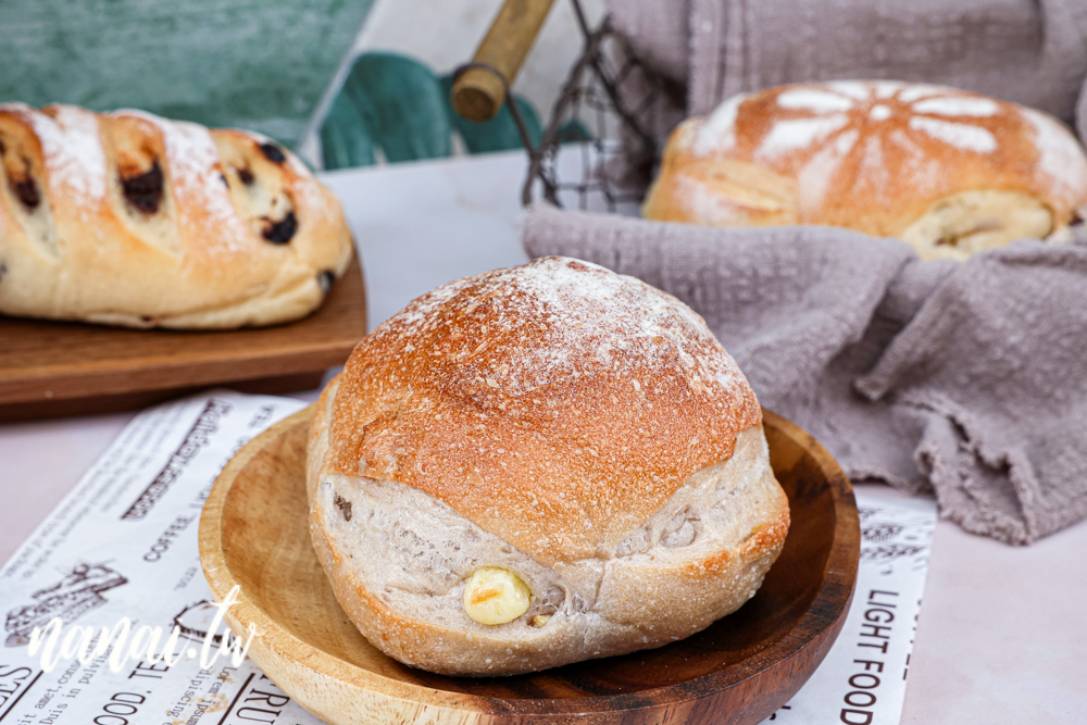 這款常態東風起司麵包,選用歐洲進口麵粉製作,裡頭拌入美國核桃,再加入滿滿高溶點乳酪丁,整體風味不會太重,吃得到核桃香氣與乳酪鹹香,麵包體Q彈中帶咬勁,也不會太乾硬。