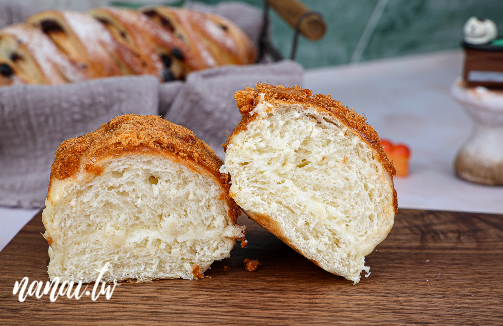 大人小孩都愛的日式小肉鬆,雖小卻紮實,咬下去口感也很實在。採用日本麵粉與台灣小麥製成,表層鋪上榮記老字號肉鬆,肉香自然,細緻不乾柴,保有一點潤度,整顆用料不馬虎,好吃到會想再來一顆。