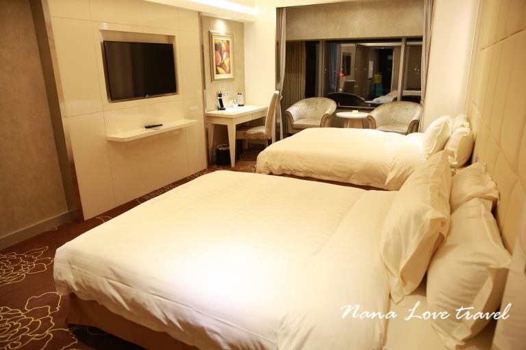 這次住利澳酒店的客房,房間空間挺大的,面積大約有33-35㎡ (平方米)左右,重點還有落地窗陽台,可以眺望澳門的景色,一整個超級無敵開心。