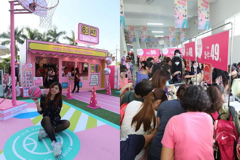 介紹完打卡點,繼續帶大家參觀「旗下全新運動品牌 8:AT 概念店」,這個品牌是愷樂代言,現在全面五折,滿三件在打九折,光是一件1000多元的運動內衣、運動褲、運動上衣,折扣後只要5~600元,價格超親民,NANA平常也有在運動,自己都忍不住多買一套了啦!