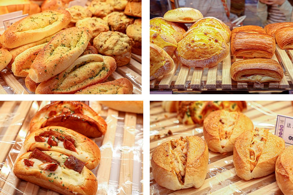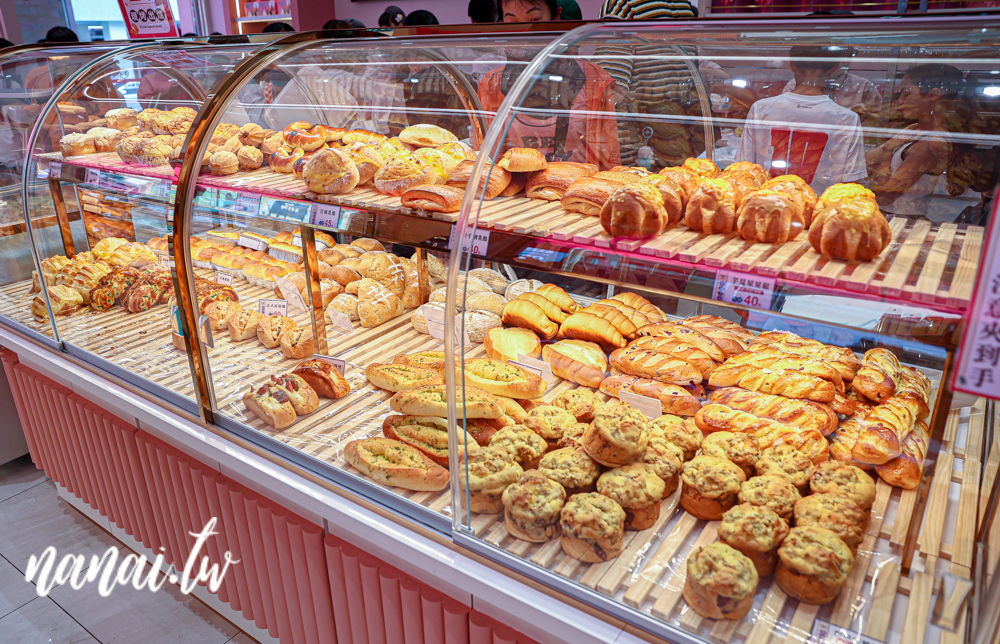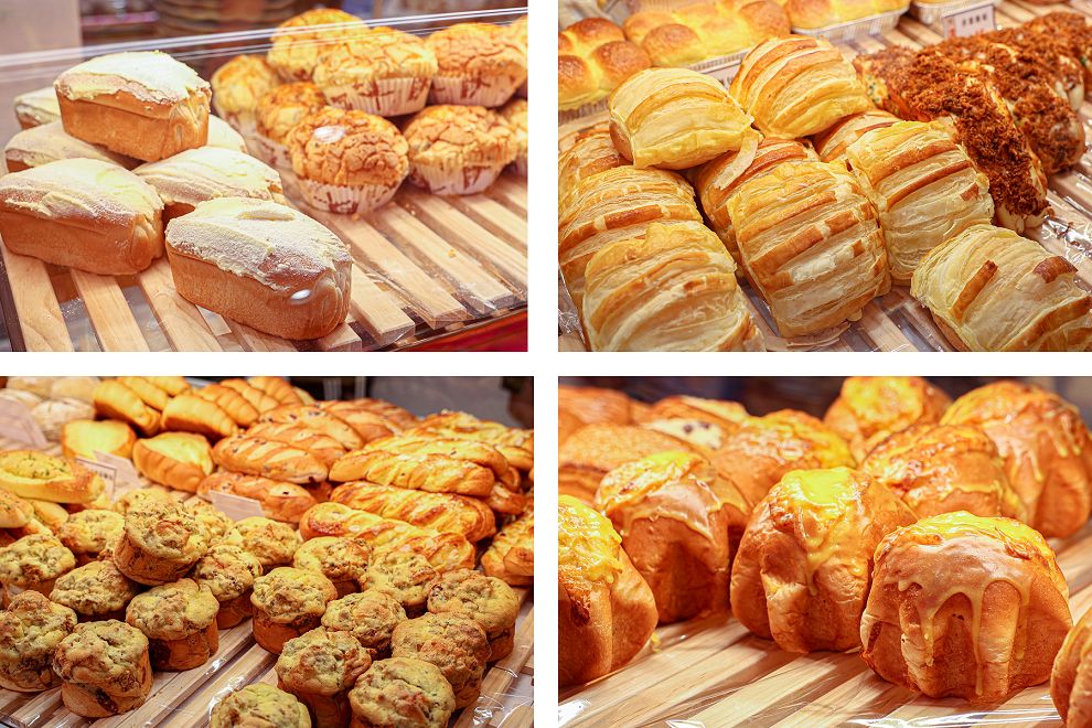 光式麵包櫃品項超級豐富,從經典不敗的岩燒乳酪、丹麥千層乳酪,到軟式香蒜麵包、芋見星星鬆,還有奶香黃金牛角、照燒雞腿堡、法式菇菇雞、香蔥雞鬆、奶酥波羅、起酥麵包、厚乳紅豆吐司、蔓越莓椰香哈斯、奶香大羅宋,以及Q版炸彈…多達數十種口味任你挑選!無論甜鹹口味,或是創意特調款式,這裡通通應有盡有,讓人一次吃過癮。