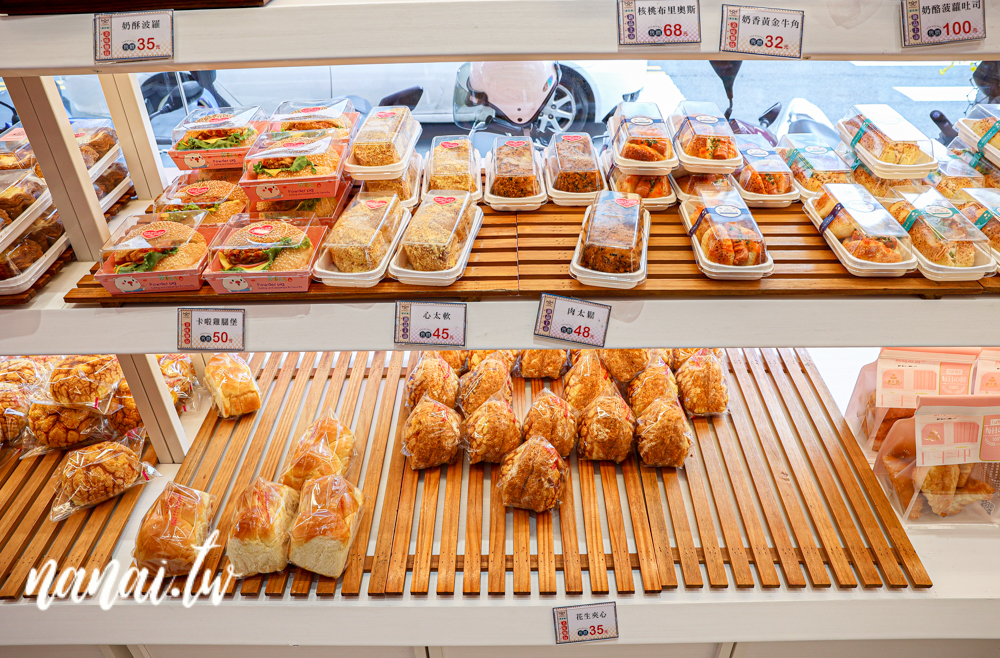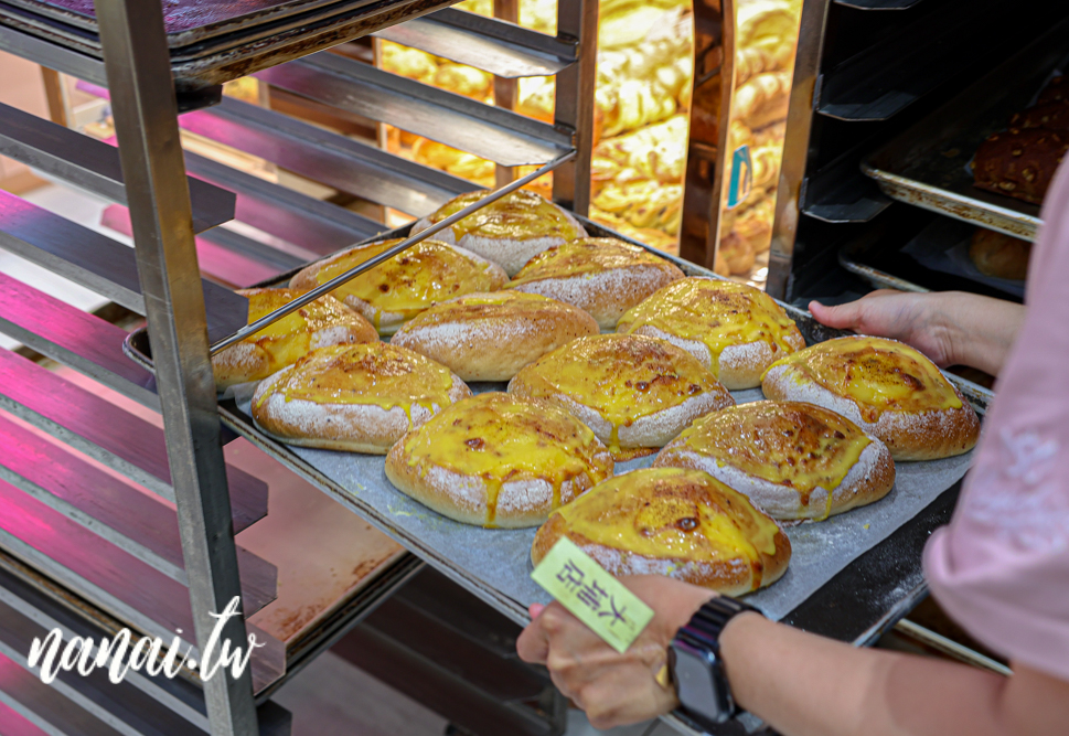 現在大埔店也設有現烤出爐的麵包櫃,採用透明玻璃設計,每日新鮮現烤,店家會在下午時段陸續補貨。想選擇最多、品項最齊全的話,建議可以16:00左右來訪,剛好是出爐高峰時間。麵包未使用塑膠袋封裝,大家可以先挑好再開門夾取,並記得戴口罩保持衛生喔。