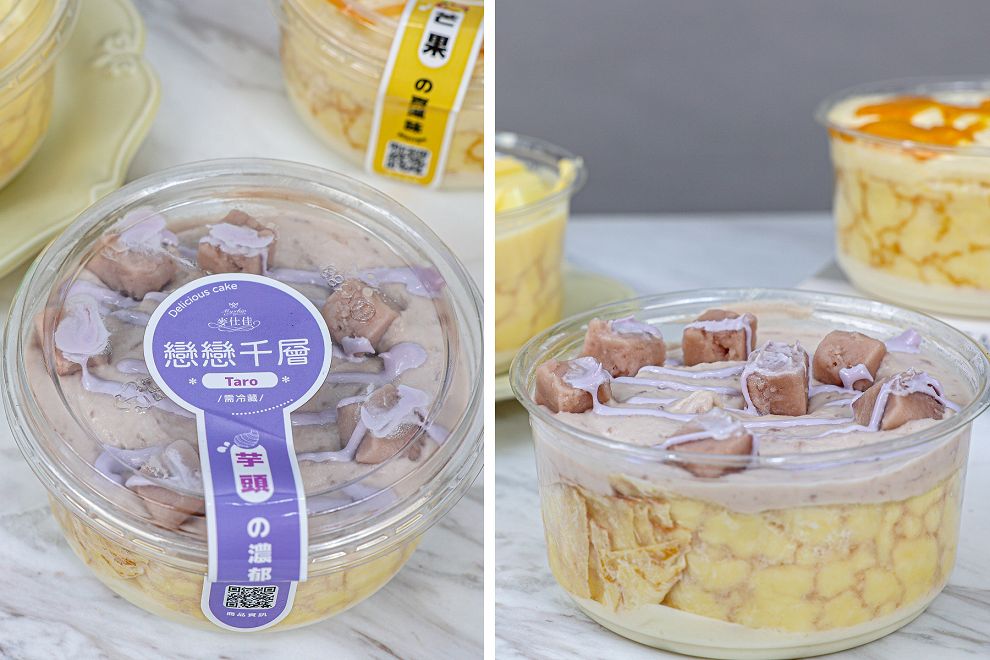 麥仕佳持續進化,不只招牌商品穩坐人氣榜,更不定期帶來新品驚喜。像這次推出的戀戀千層系列就大受歡迎,共有三種口味,其中芋頭與檸檬最熱賣,幾乎天天被搶光。