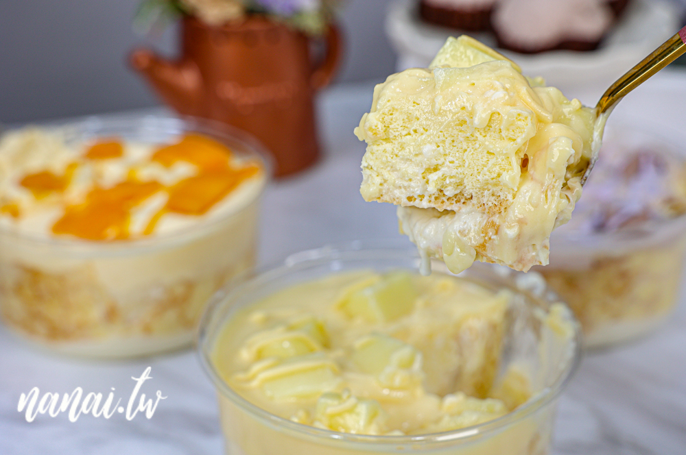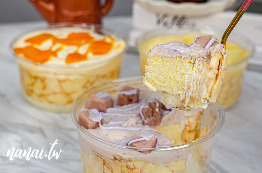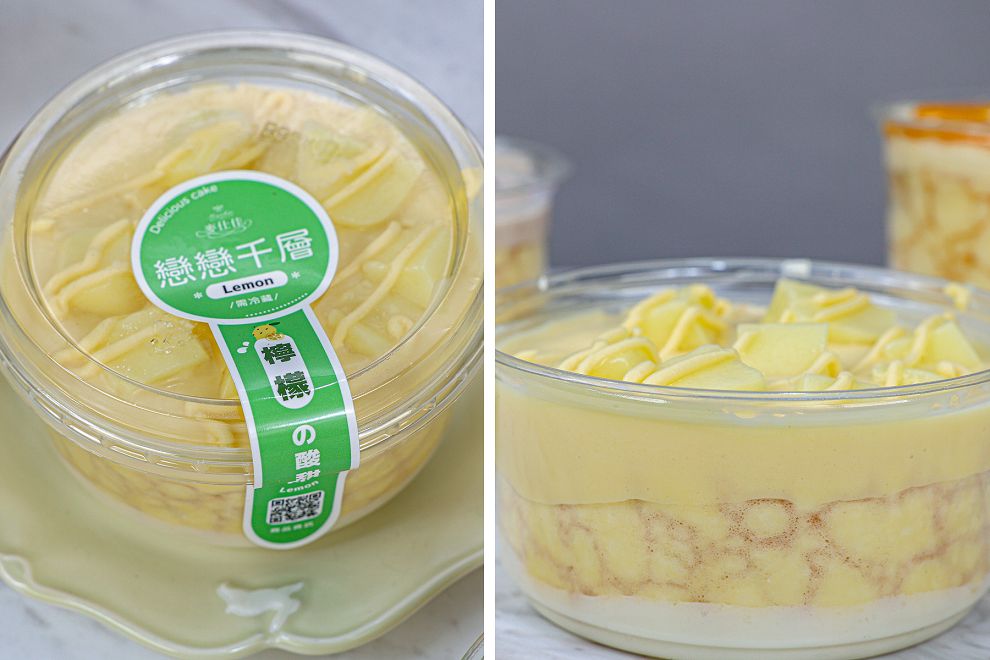 一開始還以為戀戀千層檸檬口味會偏酸,沒想到其實帶有甜感。上面是塊狀的檸檬凍,口味上甜味比例較高,隱約透出檸檬的微酸清香,但不會過於甜膩,層次感滿豐富的,不過說真的,我自己還是比較愛芋頭跟芒果口味啦XD~