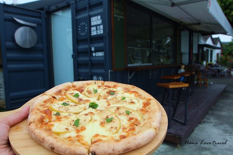 藍色貨櫃屋以柴燒窯烤披薩為主,環境以半開放式料理檯設計,透過玻璃窗看著全程披薩製作表演,這裡的披薩都是手工手拉製作,做好的披薩直接送到柴燒窯烤,一整個過程相當有趣。