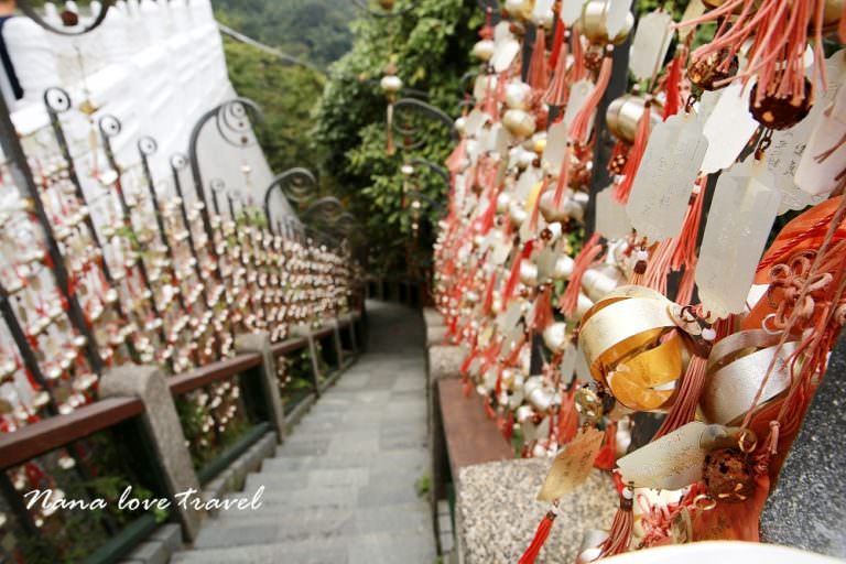 階梯上的欄杆上掛滿著遊客們對於未來的盼望,把心中的期許掛利用祈福風鈴的方式,懸掛在上面,這一幕讓人很有中國的韻味。
