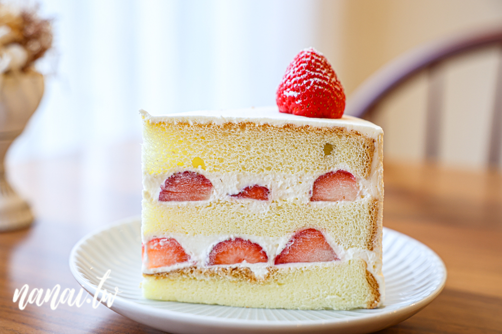 我們點了一塊草莓蛋糕,底層是香草蛋糕體,口感蓬鬆,內餡夾著雙層新鮮草莓,搭配使用動物性鮮奶油製作的滑順夾層,奶油不膩口,草莓則酸甜多汁,整體吃起來清爽又滿足。