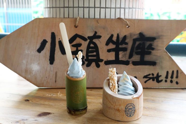 台西冰菓室的品項很簡單,目前只販售霜淇淋與盆栽蛋糕、前山烏龍茶,然而霜淇淋的口味都是以現場販售為主,這天來訪只剩下蝶豆花霜淇淋,竹筒是採用新鮮桂竹管,食用完畢後可以直接帶走,價格落在80元~100元左右。