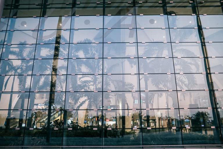 夜晚的彰化高鐵站有一種寧靜的氛圍,大片的玻璃設計,從外面眺望進去可以看到綠色的植物,很符合彰化田尾的象徵。