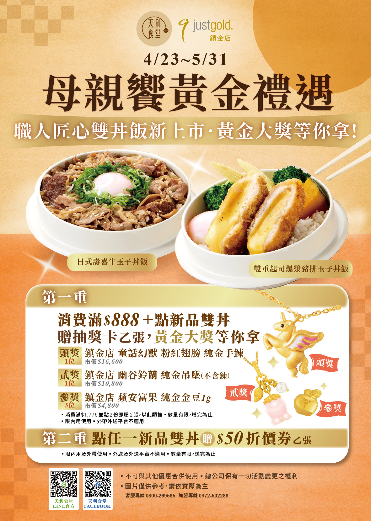 活動1:母親節饗黃金禮遇,職人匠心雙丼飯!黃金大獎等你拿!(張張有獎)