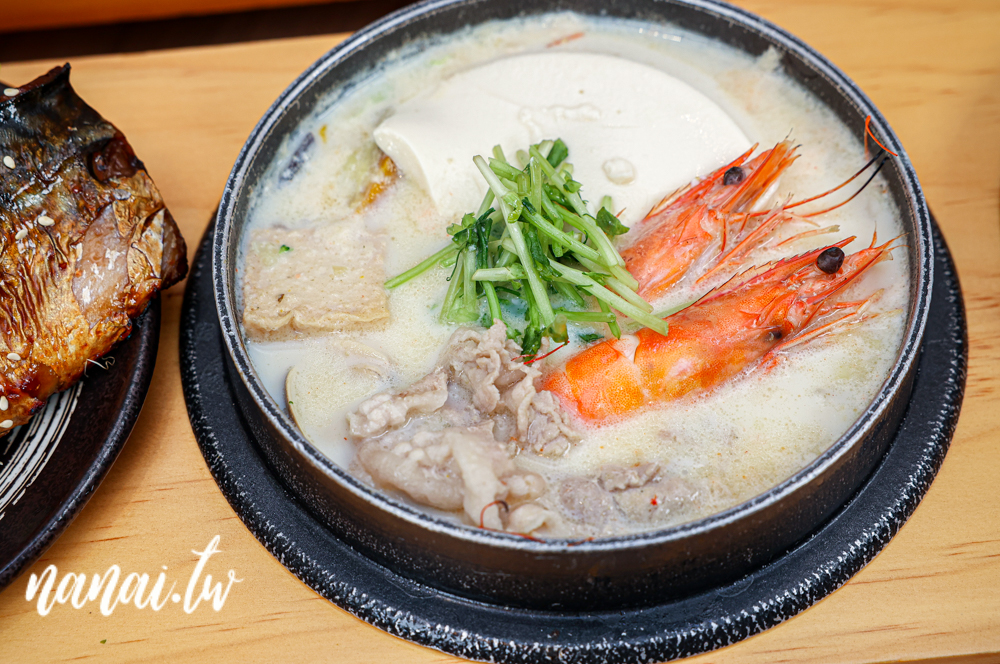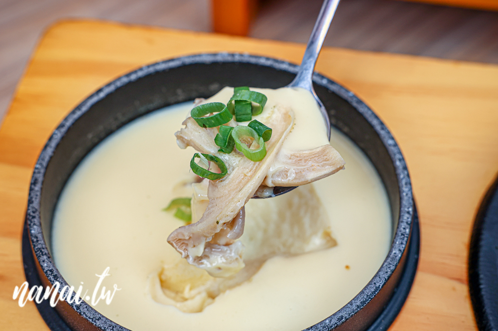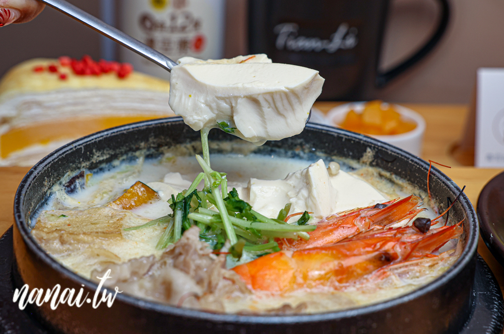 天利最熱銷的就是絹豆腐鍋,其中絹豆腐可是每日手工製作。來這裡幾乎每桌會點,而且湯頭就有昆布、麻辣、柚香、或是加價10元升級超人氣的黃金十度湯底。這次就選了蒲燒秘製鯖魚絹豆腐鍋+黃金十度湯底,特別是嚴選非基改黃豆熬製,湯頭濃郁又滑順,嚐起來有種自然甘甜與豆香。