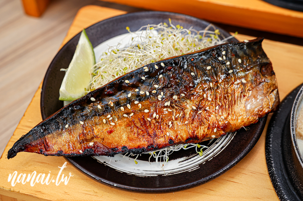 蒲燒秘製鯖魚淋上蒲燒醬汁,表皮煎得恰到好處,微酥中帶點金黃焦香,一口咬下鹹甜醬香融合著炙燒香氣在嘴裡綻放,裡頭魚肉細嫩,刺不多,而且份量給得挺大尾。