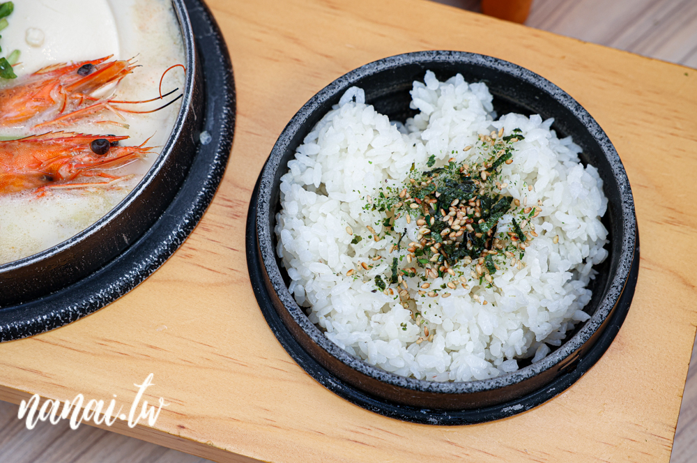 附的白飯上面還撒上香鬆和白芝麻,米粒粒粒分明、濕潤不黏糊,配什麼都好吃。