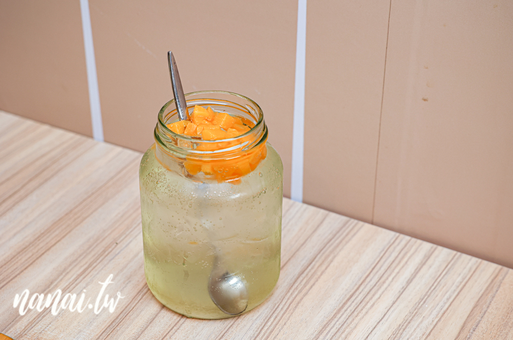 甜心甜桃氣泡飲裡頭加了黃桃丁果肉,每一口都喝得到果香,清新又爽口,甜味也很剛好,氣泡是溫和不嗆口,很適合邊吃飯邊搭一杯。